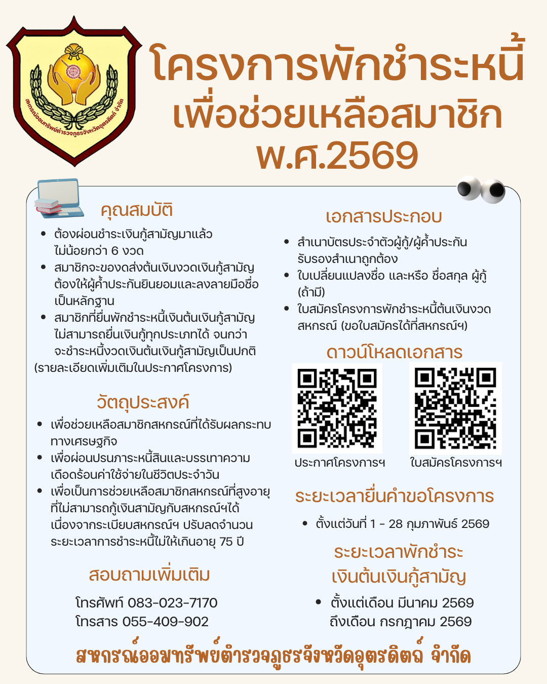 ประกาศ โครงการพักชำระหนี้เพื่อช่วยเหลือสมาชิก พ.ศ.2569