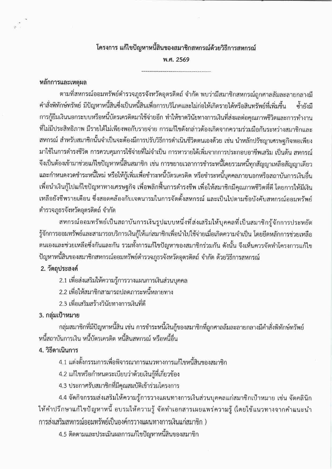 ????????ประกาศโครงการแก้ไขปัญหาหนี้สินของสมาชิกด้วยวิธีการสหกรณ์พ.ศ. 2569